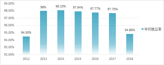 从历年来看,我校毕业生就业率均高于全省平均就业率(2018年全省平均就业率89.21%),具体如下: