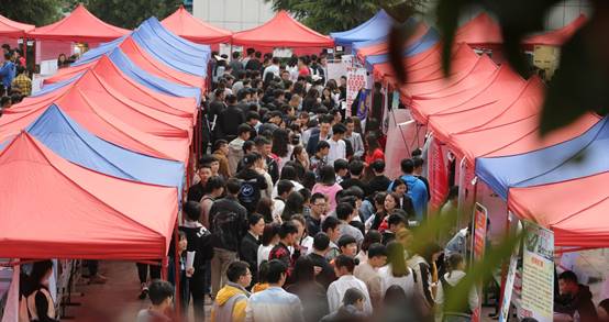 此次校园招聘会由贵州省人力资源和社会保障厅主办,贵阳市观山湖区就业局、贵州广播电视大学(贵州职业技术学院)、省人才大市场共同承办。招聘会受到了招聘企业方和我校学生的热烈欢迎,共有170余家企业参加,涉及大数据、电商、建筑、文化、旅游、金融、地产、物业管理、保险、餐饮等多个领域,其中招商银行股份有限公司、贵州中铝铝业有限公司、华润水泥有限公司、中国平安交通银行股份有限公司、贵阳货车帮科技有限公司、贵州永辉超市有限公司、贵阳南明老干妈风味食品有限责任公司、贵州高速公路集团有限公司、海尔集团、贵州神奇药业有限公司、中国人民人寿保险公司等多家省内外知名企业到场参加。