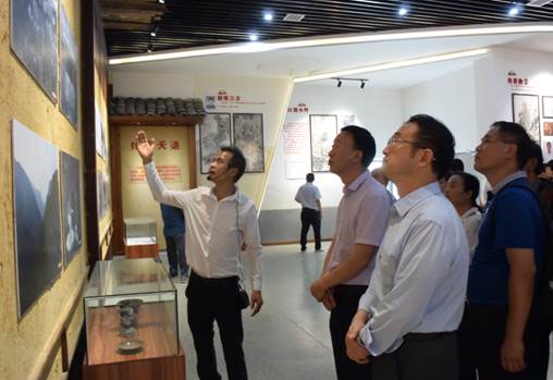 在大发渠党性教育陈列馆,全体党员认真聆听黄大发老支书的先进事迹。黄大发曾任遵义市播州区平正乡草王坝大队大队长、村民委员会主任、村支部书记。20世纪60年代起,他带领群众,历时30余年,靠着锄头、钢钎、铁锤和双手,在绝壁上凿出一条长9400米、地跨3个村的“生命渠”,结束了草王坝村民委员会主任期缺水的历史。乡亲们亲切地把这条渠称为“大发渠”。通渠后,黄大发还带领乡亲们坡改梯、铺村路、架电线、建学校、搞养殖,摆脱了当地贫穷落后的面貌,走上了脱贫致富奔小康的道路。黄大发忠实践行修渠致富的誓言,不等不靠、自力更生、战天斗地,“一生只为一条渠”的坚韧品质和愚公精神,深深地感染了每一位党员。