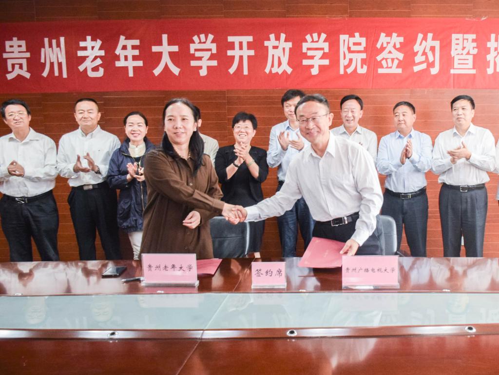 贵州广播电视大学(贵州职业技术学院)党委副书记、校长李皖与贵州老年大学校长郭焱签订了合作办学协议书。
