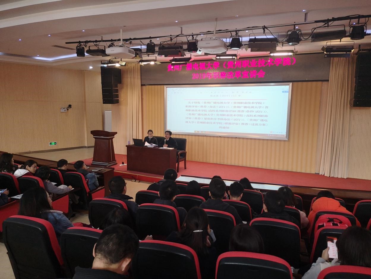 2019年12月9日下午14:30,人事处(教师工作处)在图书馆二楼报告厅举行我校2019年职称改革宣讲会,各学院(部门)的近百名教职工到会听讲。