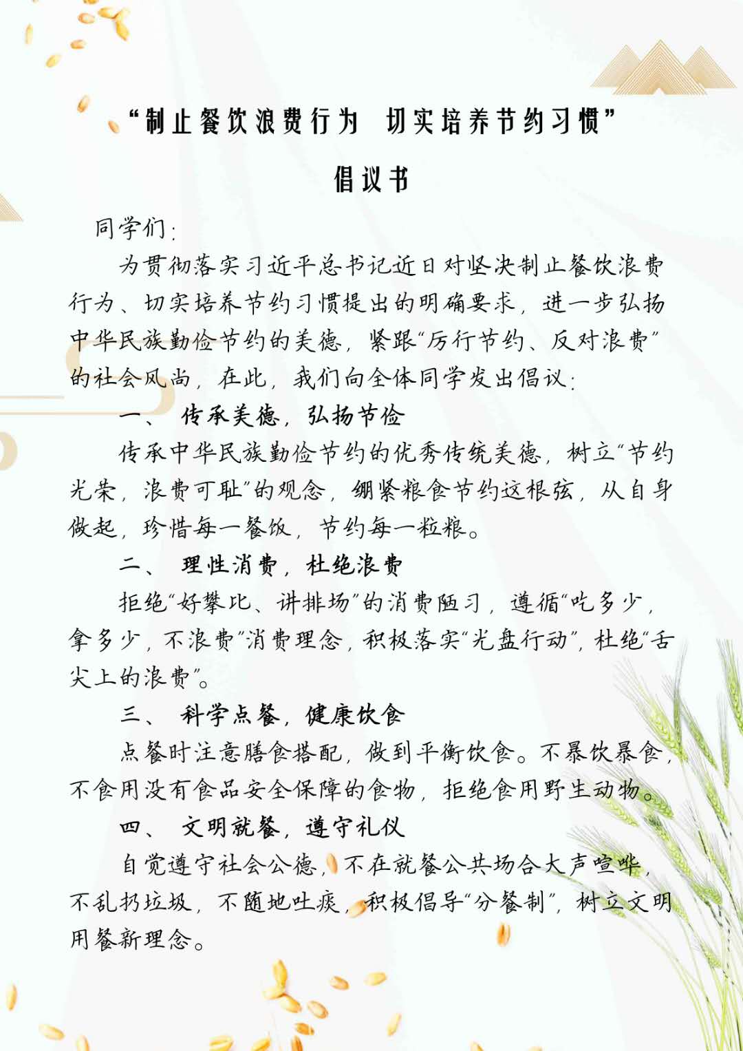 “制止餐饮浪费行为 切实培养节约习惯”倡议书
