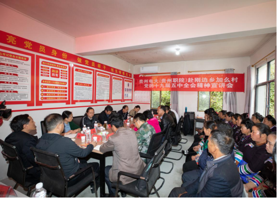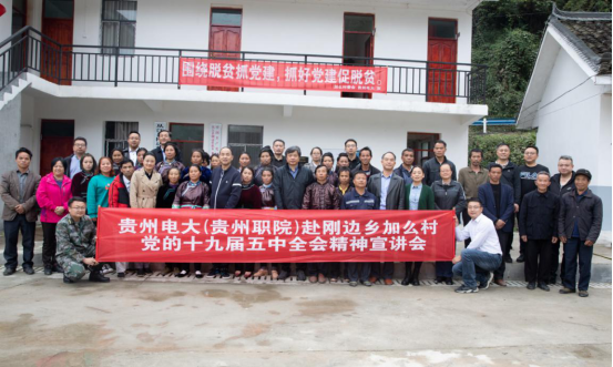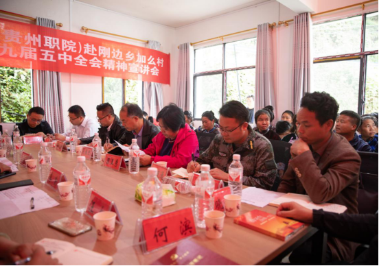 11月16日下午,贵州广播电视大学(贵州职业技术学院)党委书记王爱华、校长汤健和副校长李勤、于立群、汪红等一行不顾舟车劳累,风风火火地赶赴从江县刚边壮族乡加么村这个脱贫攻坚最前线,第一时间坐下来与壮族老乡拉家常,畅谈党的十九届五中全会精神,分享自己的认识和体会,让村民们充分了解全会的主题内容和核心思想。