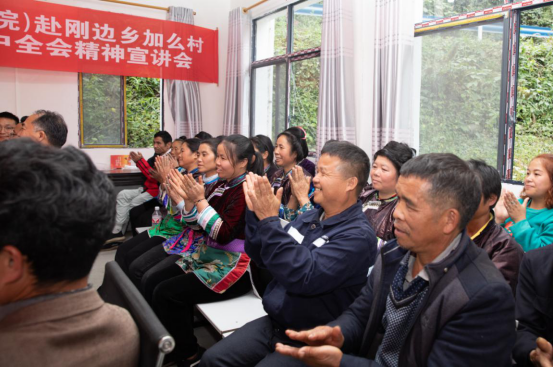 “听了宣讲后,我收获了很多,没有想到党的政策这么快就传到我们群众心里头啦。中央提出实施乡村振兴,我们农村大有盼头、大有希望,自己也能再展身手。当前,各项政策惠及我们生活的方方面面,大家都要感党恩、听党话、跟党走,把家园搞得更美丽,把日子弄得更红火”,加么村支部书记韦国勤如是说。