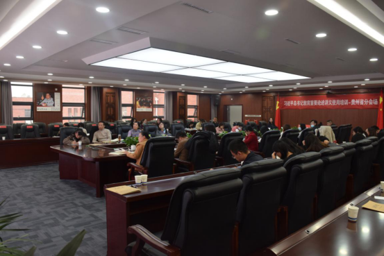 11月23日上午,《习近平总书记教育重要论述讲义》使用培训会开班,贵州分会场在贵州广播电视大学(贵州职业技术学院)教学科研楼三楼会议室举行同步直播。教育厅副厅长周进及相关部门同志,学校党委副书记、校长汤健,党委副书记龚辉出席培训会。学校相关部门负责人、思政课教师和部分辅导员参加培训。