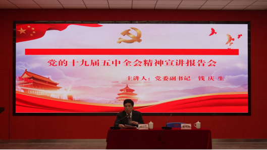 宣讲会紧扣党的十九届五中全会主题,从会议所处的历史方位和战略地位、“十三五”以来取得的成就、“十四五”及以后更长一个时期的目标举措三个方面对十九届五中全会精神进行了解读。钱庆生副书记以全民支援武汉市抗击疫情为例,彰显了在共产党领导下中国人民显现出的伟大力量。