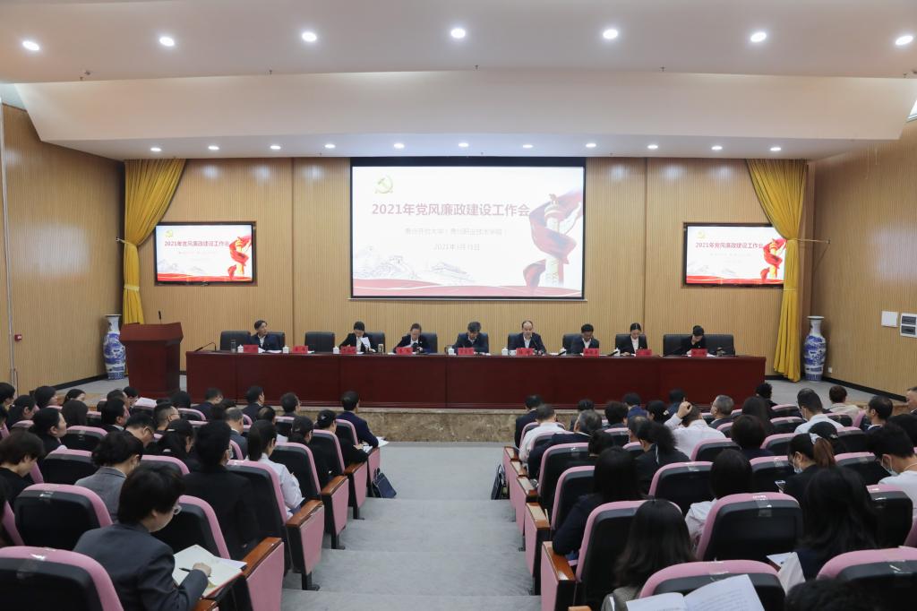 会议深入贯彻党的十九届五中全会精神,学习十九届中央纪委五次全会、十二届贵州省纪委五次全会精神,落实贵州省教育系统全面从严治党工作视频会议的安排部署,总结学校2020年度党风廉政建设工作,部署和安排2021年度党风廉政建设任务。