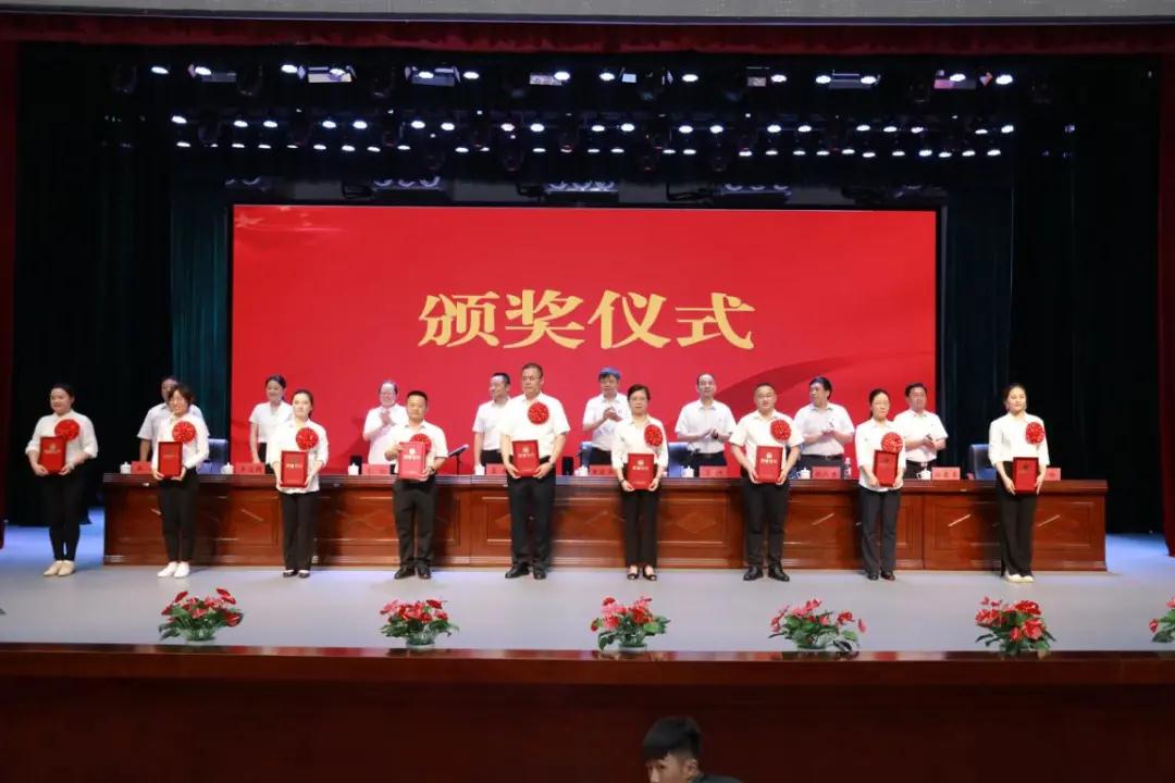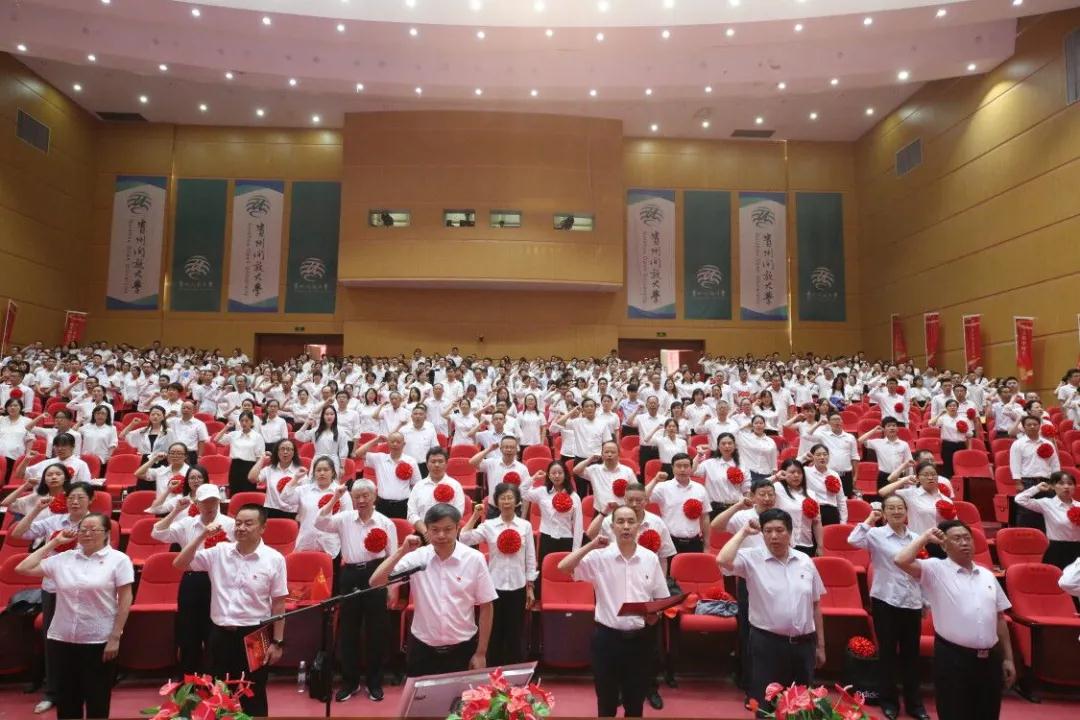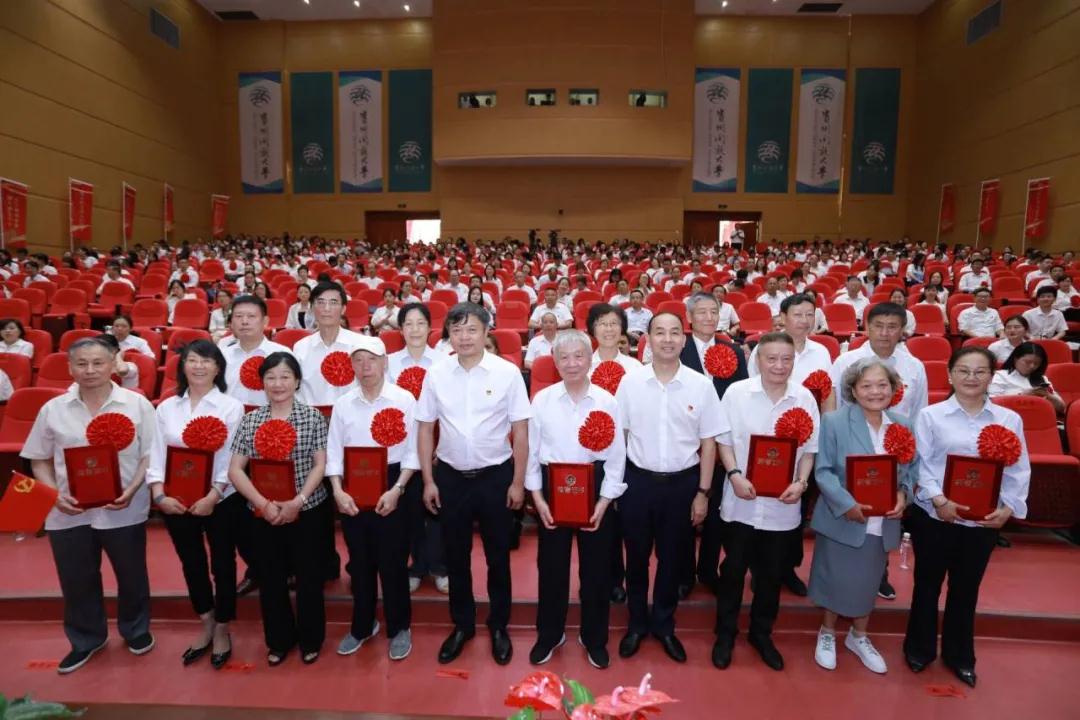 百年征程波澜壮阔,百年初心历久弥坚。7月6日下午,我校庆祝中国共产党成立100周年暨“七一”表彰、脱贫攻坚总结表彰大会在大礼堂举行。省委党史学习教育第十三巡回指导组组长刘昭义同志、组员邓四炳同志、组员宋璨羽同志及在家校领导出席大会。全体教职工、离退休教职工代表、学生代表等参加大会。党委副书记、校长汤健主持会议。