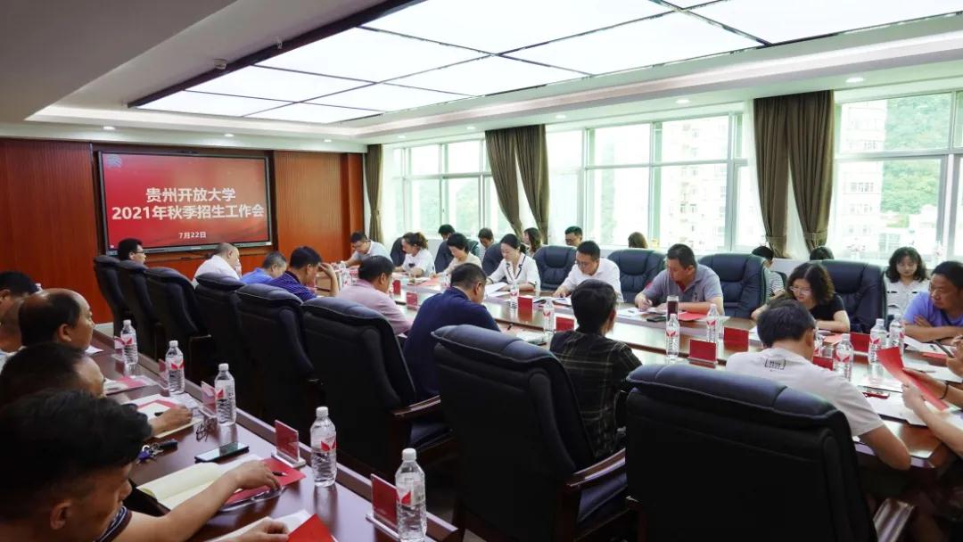 7月22日上午,贵州开放大学2021年秋季招生工作会在贵州开放大学八鸽岩校区召开。贵州开放大学(贵州职业技术学院)党委委员、副校长于立群,各分校分管招生的校领导、招办负责人以及县级工作站代表,招生就业指导中心全体人员,开放教育学院、远程教育教学部负责人参加了会议。会议由招生就业指导中心主任李江波主持。