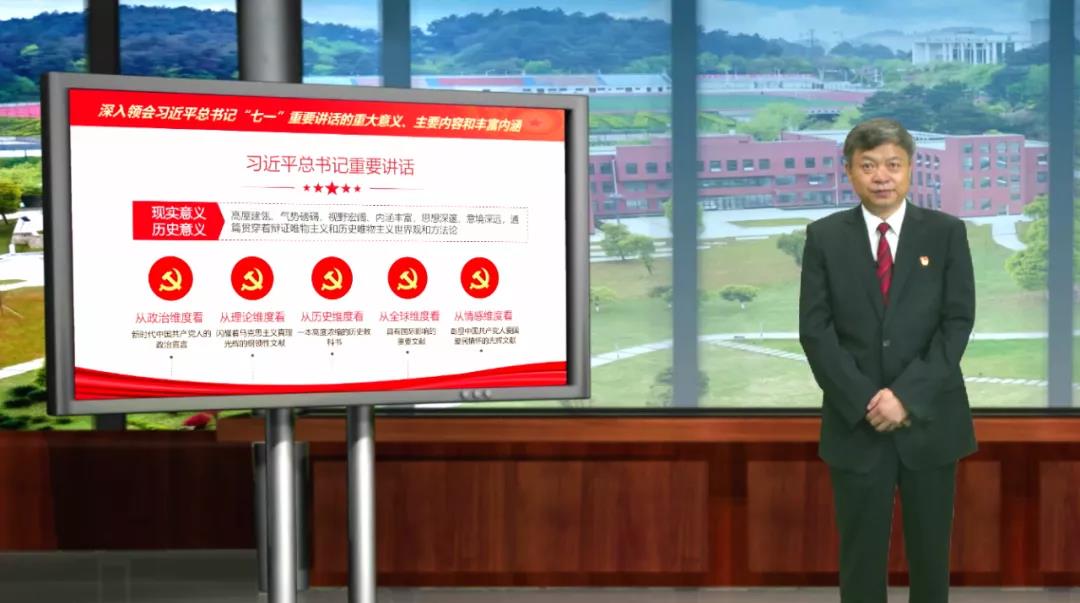 为深入学习宣传贯彻习近平总书记在庆祝中国共产党成立100周年大会上的重要讲话精神,深化党史学习教育成果,9月2日晚贵州省委党史学习教育宣讲团成员、贵州开放大学党委书记王爱华教授以网络在线方式面向全省开放大学系统专题宣讲习近平总书记“七一”重要讲话精神并讲授“开学第一课”。