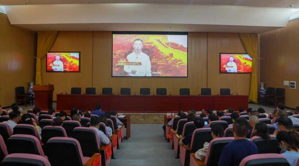 2021年9月6日上午10时,国家开放大学党委副书记刘臣以视频直播方式主讲“开学第一课:百年大党实现中华民族伟大复兴的政治宣言——学习贯彻习近平总书记‘七一’重要讲话精神”。贵州开放大学党委书记王爱华、校长汤健等校领导,全校中层干部、部分教师代表在学校云潭南路校区行政楼9楼会议室收看了此次直播。
