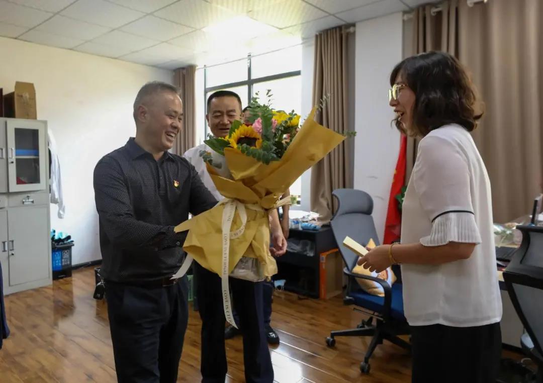 10日上午,在云潭南路校区,龚辉副书记和工会负责人等一行深入教师工作岗位,向在职在岗教师代表谢冬梅、陈星两位老师传达了学校党委行政的节日祝福和亲切问候。交谈中,龚辉副书记说到,我校教育工作取得的成绩,离不开奋战在一线的教师们的辛勤耕耘、默默奉献,希望教师们继续发扬爱岗敬业的精神,以教书育人为己任,弘扬新时代教师的工匠精神,继续为教育发展贡献力量。两位教师感恩于学校的培养和帮助,表示必将永葆初心,时刻牢记作为一名人民教师的社会责任和神圣使命是教书育人和为人师表。