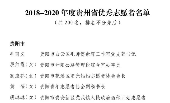 为褒扬广大志愿者、志愿服务组织在我省政治、经济、社会、文化、生态建设各个领域和脱贫攻坚一线为推进志愿服务制度化、社会化、专业化、常态化作出的积极贡献,共青团贵州省委、贵州省精神文明办、贵州省民政厅决定对2018-2020年度志愿服务事迹突出的志愿者和志愿服务组织进行表彰。