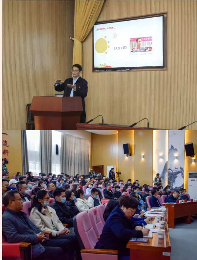 最后,宋广强书记以《奋进新时代 争当追梦人》为题,通过列举大国工匠、时代楷模和我校身边学生奋进拼搏实例,为现场师生上了一堂深刻的思政大课。希望同学们牢记习近平总书记对青年的殷切期望,“心”有理想,志存高远;迎难而上,“肩”扛担当;砥砺奋斗,“脚”踏实地;敏而好学,“手”握本领;崇德慎行,“身”有修养,努力成长为有理想、有本领、有担当的新时代青年。