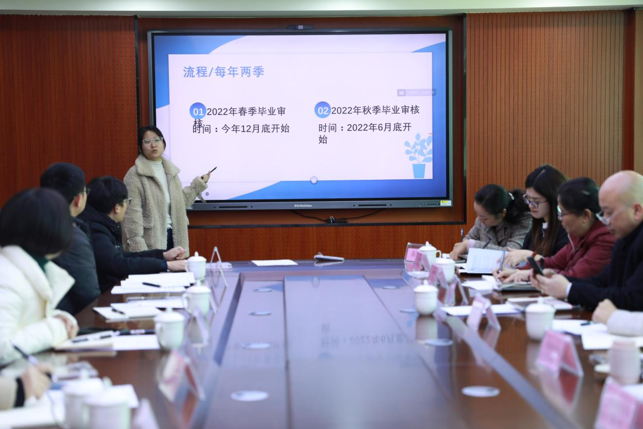 为加强全省开放大学系统建设,切实提升全省开放教育学籍学历管理能力,交流本年度工作经验,强化具体业务操作的规范性和时效性,2021年11月24日,贵州开放大学在八鸽岩校区召开“2021年全省开放教育学籍学历管理交流培训会”,会议由八鸽岩校区管理处孙毅同志主持。学籍科全体人员,11个分校、学院相关工作人员参会。