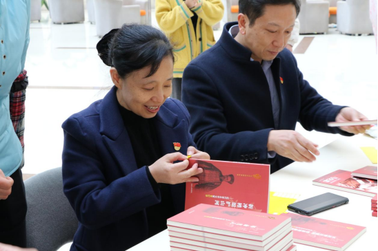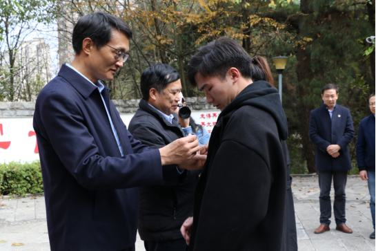 随后,宋广强、钱庆生两位老党员一起为学生预备党员代表佩戴党徽,钱庆生同志对新党员提出要了坚定政治信仰、加强政治历练、强化服务意识的希望。