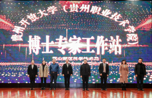 会上,举行了贵州开放大学(贵州职业技术学院)博士专家工作站揭牌仪式和观山湖区科普共建签约仪式。我校副校长李勤、省博士协会理事长张大斌、观山湖区副区长刘俊生以及省科技厅、市科学技术局、市科学技术协会、观山湖区委人才工作领导小组等单位共同为贵州开放大学(贵州职业技术学院)博士专家工作站揭牌。该博士专家工作站通过观山湖区科学技术局牵线搭桥,贵州省博士协会与贵州开放大学(贵州职业技术学院)共同建立,由创新与实践能力强、科研素质高、具有一定影响力的教授、博士、专家组成科技研究团队,对于更广泛地吸引人才,加强人才培养,推进产学研用合作具有十分积极的意义。