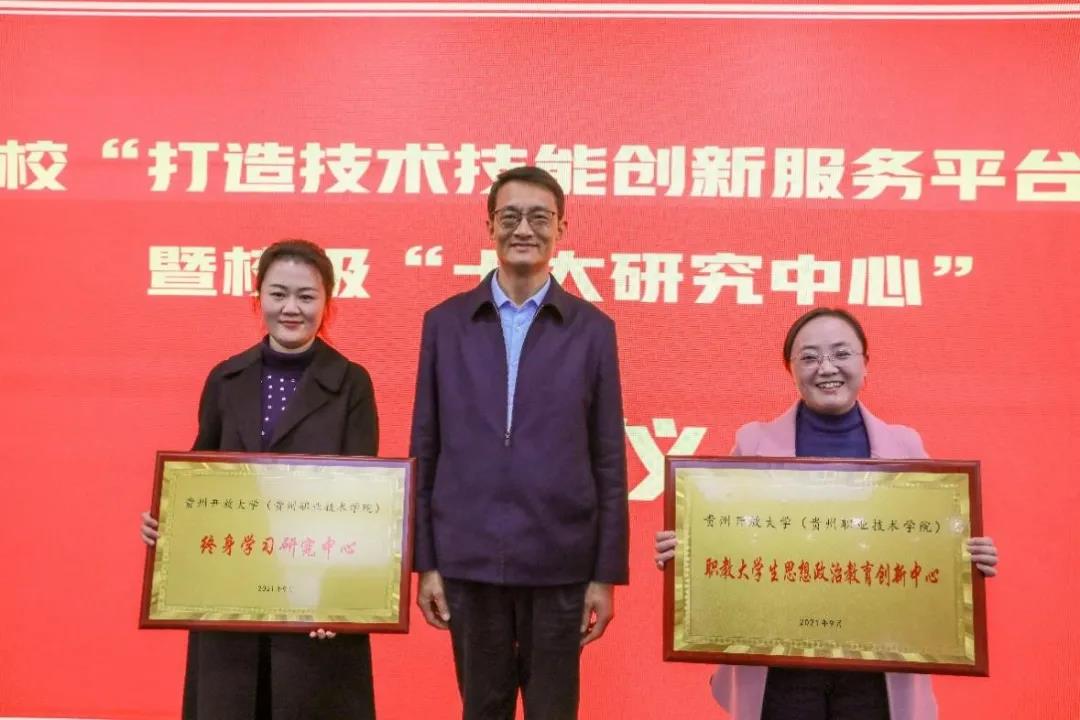 最后,学校党委副书记、校长汤健发表讲话,他强调:我们在这里举行双高校“打造技术技能创新服务平台”项目暨校级“十大研究中心”授牌仪式,既是形势所需,也是发展之要,更是打造社会“点题”、教学“出题”、科研“破题”全链条创新创造体系,推动学校形成大科研格局,提升学校科研服务社会经济发展水平的现实举措。各研究团队要以此16个研究平台为载体,以时不我待的紧迫感和使命感,聚焦贵州大势、教育大局、学校大事,聚焦系统特色、专业(群)特点,倾力种好“责任田”勇当“最强大脑”,奋力唱好“群英会”打造“最强天团”,以高质量的科研推动学校实现高质量的发展!