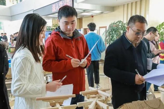 学校党委书记宋广强、党委副书记龚辉、副校长汪红一行到比赛现场进行指导,观看参赛建筑模型,了解比赛场地布置、评委老师评选流程以及学生竞赛情况,对大家的付出和学生的表现给予肯定。同时要求相关工作人员要精心组织,保证比赛公平公正,并不断总结经验,提高比赛质量。学校领导在参观的同时也参与了投票打分环节。赛场上,团队选手向评委们详细讲解了建筑模型制作理念、背景及构成要素,让评委们对作品和学生所学知识有了深入了解。随后,校领导仔细查看了模型及展板介绍,对每位同学的辛苦付出以及作品给予了高度肯定。参赛模型将在赛后持续展出一周。