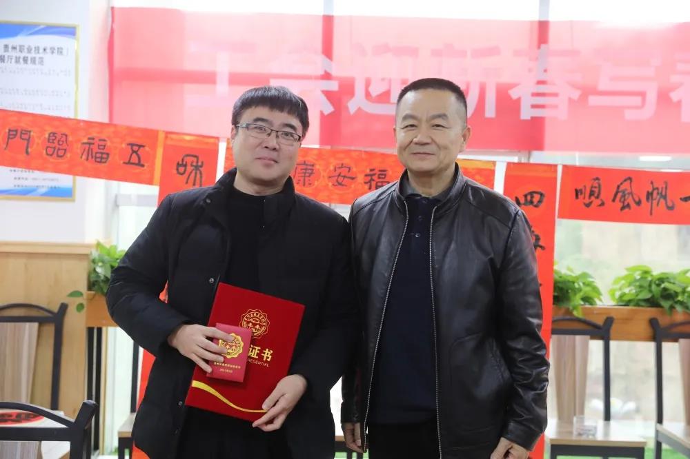 活动中,龚辉副书记为我校荣获贵州省“最美劳动者”的周涛老师颁发证书和奖章,为本次活动又增添了绚烂的一笔。一副副喜庆的春联,一份份浓浓的情义,表达了工会组织对劳模的尊重和关爱,对劳模工作的肯定。