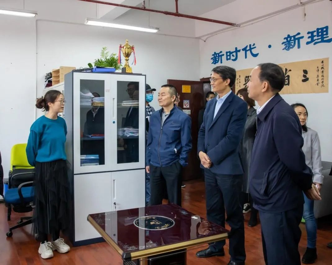 校领导一行走进新入驻的辅导员办公室,亲切看望辅导员。党委书记宋广强表示,各学院搬迁至教学楼后离学生更近了,便于学生管理及学生工作的开展,要充分发挥文化育人、管理育人的功能,进一步加强学生思想政治和职业素养教育,共同营造安全稳定、和谐有序的育人环境。