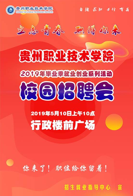 贵州职业技术学院2019年毕业季就业创业系列活动--校园招聘会即将举办