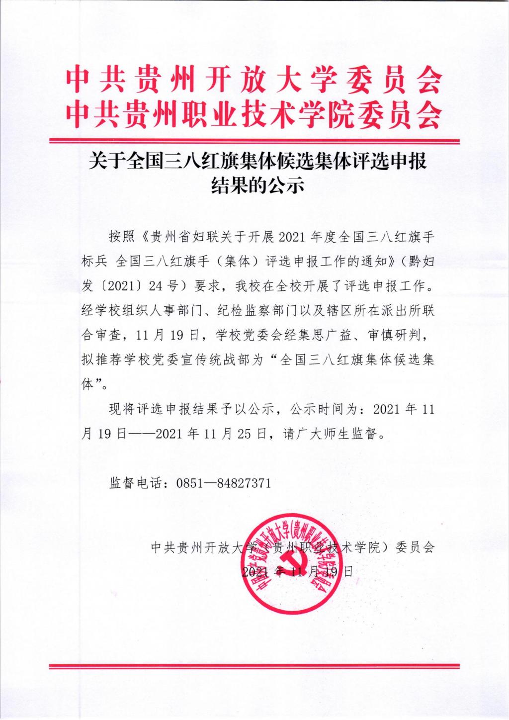 关于全国三八红旗集体候选集体评选申报结果的公示