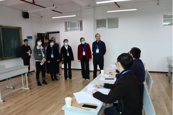 在考试现场,汤健和李勤长认真检查考试情况,向考务人员仔细询问考生考试流程,考场组织安排、技术保障等具体情况,对考试秩序表示充分肯定。