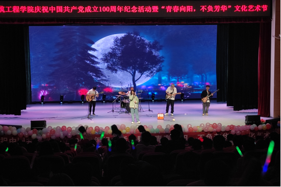 晚会以“青春向阳,不负芳华”为主题,通过爱国爱党主题节目和穿插的党史知识竞赛,青春洋溢的建工学子给全院师生送上了精彩纷呈的晚会表演,节目在创作、编排和选择上打破常规、独具匠心,在确保艺术高度的同时,加入了青春的温度。晚会节目由忆·峥嵘岁月、聚·青年之火、颂·大美华夏三个篇章组成,形式丰富多彩,内容精彩彩纷呈、在同学们《没有共产党就没有新中国》的大合唱中文化艺术节正式拉开帷幕,合唱队伍唱出了新时代青年对党、对祖国、对社会主义的浓厚深情和热情讴歌,精神催人奋进,气势振奋人心。学生激情朗诵《为党歌唱》、演绎苗族舞蹈锦鸡舞、古典舞《九玖》、相声《学成语》、戏剧表演《女驸马》《霸王别姬》、军事表演战术、街舞串烧舞蹈等节目,教师合唱《为了谁》获得阵阵掌声和欢呼声,老师们展现了舞台上、讲台下的另一面。