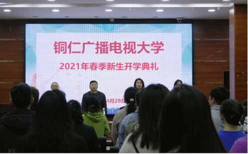 4月28日晚上,铜仁广播电视大学2021年春季新生开学典礼在远教大楼二楼多功能会议室隆重举行。学校党委书记陈荣强教授,校长喻莉教授,党委委员、副校长田茂琴副教授出席了开学典礼,全体管理教师及2021年春季新生代表共百余人参加了开学典礼。开学典礼由校党委委员、副校长宋友德教授主持。