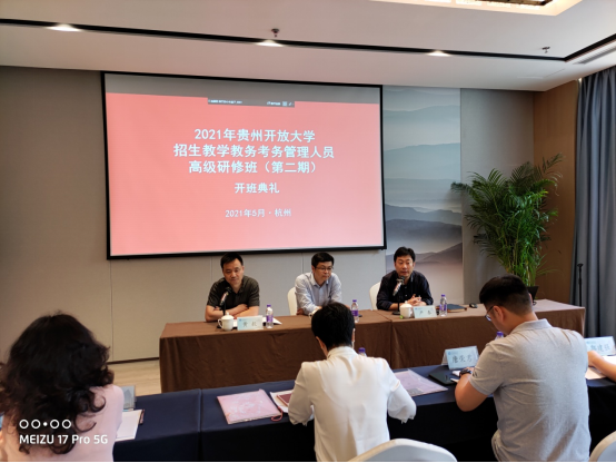 为进一步提升我校办学体系招生、教学、教务、考务人员人员业务水平,增强管理能力、创新能力、执行能力和服务能力,提高综合素质,贵州开放大学招生教学教务考务管理人员高级研修班(第二期)一行51名学员赴浙江杭州,学习浙江开放大学先进办学理念和教学管理模式。5月31日上午,研修班开班典礼隆重举行,浙江开放大学培训学院办公室主任黄毅主持典礼。